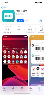 오늘 저와 함께 할 어플은 iOS14를 위한 멤버십 위젯입니다. 사실 이 앱은 기존 iOS13에서도 지원하던 앱입니다. 기존에 홈 화면의 좌측 위젯과 바로가기 목록에 표시되었던 것을 홈 화면으로 그대로 옮겨왔습니다.