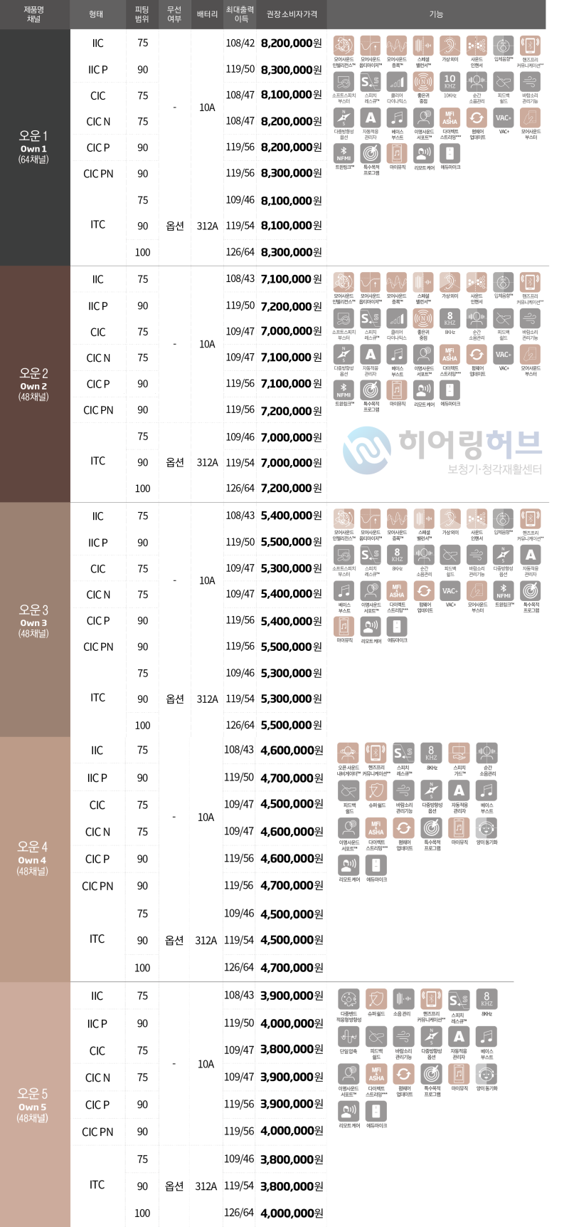 귀에있는 보청기는 5 개의 가격으로 나눌 수 있습니다. 일반적 으로이 가격대는 보청기의 성능과 기술에 따라 달라지며 귀의 상태와 환경에 따라 올바른 제품을 선택하는 것이 가장 중요합니다.