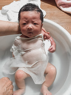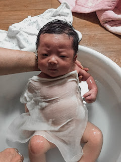참고로 아기 목욕물에 몸을 담그고 목욕하는 것은 탯줄을 푼 후에 할 수 있기 때문에 탯줄이 풀리기 전이라면 목욕만 하면 돼요!하세요~