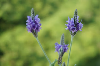 햇빛에 피나타 라벤더 꽃이 한 송이씩 늘어나고 있어요.